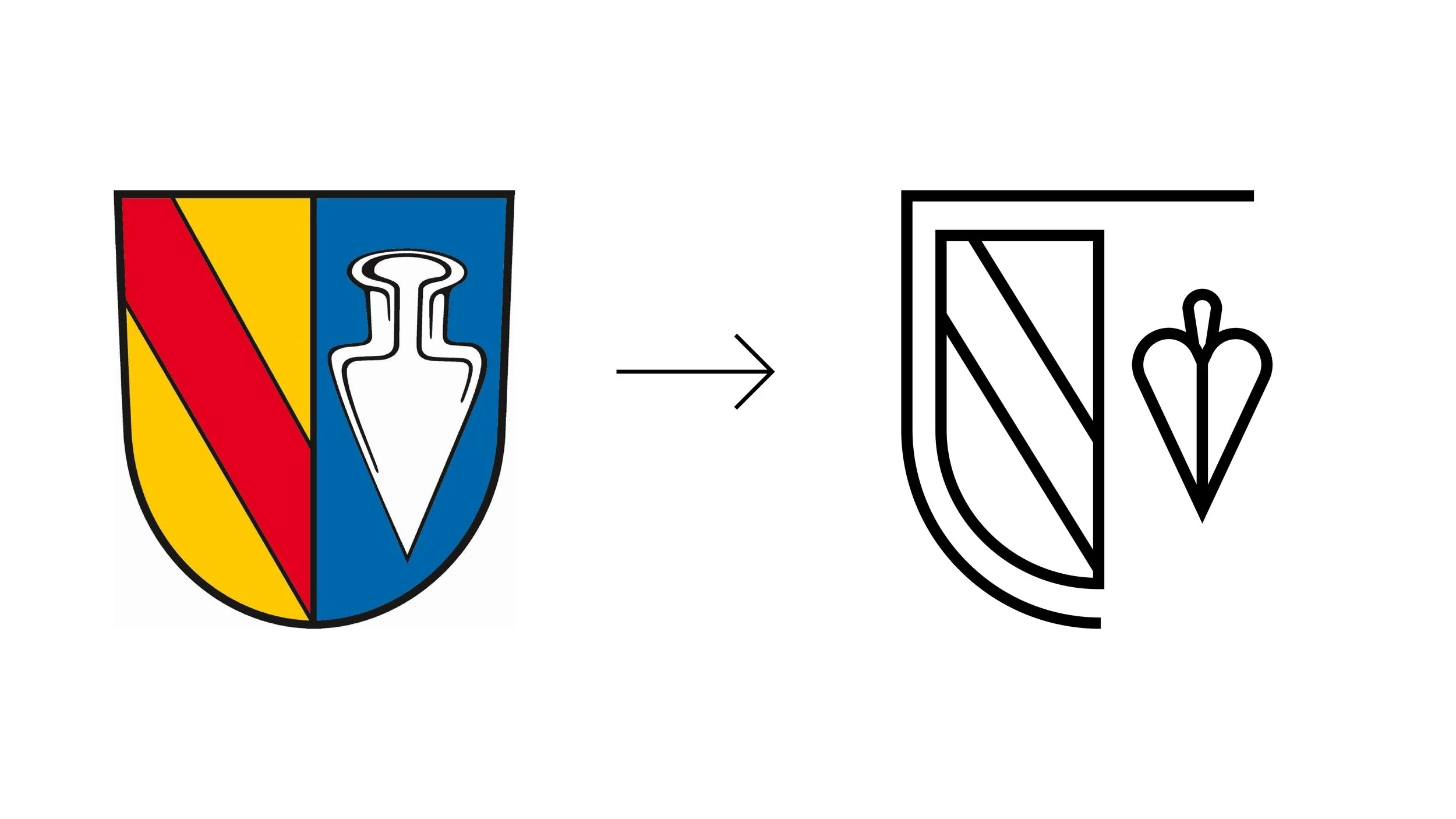 Entstanden ist eine reduzierte, stilisierte Wappenform, die auf den prägenden Elementen basiert: dem badischen Schrägbalken, der Pflugschar sowie der charakteristischen Schildform. Der bewusste Verzicht auf Mehrfarbigkeit bildet den ersten Schritt zu mehr Klarheit, Wiedererkennbarkeit und gestalterischer Einheit.