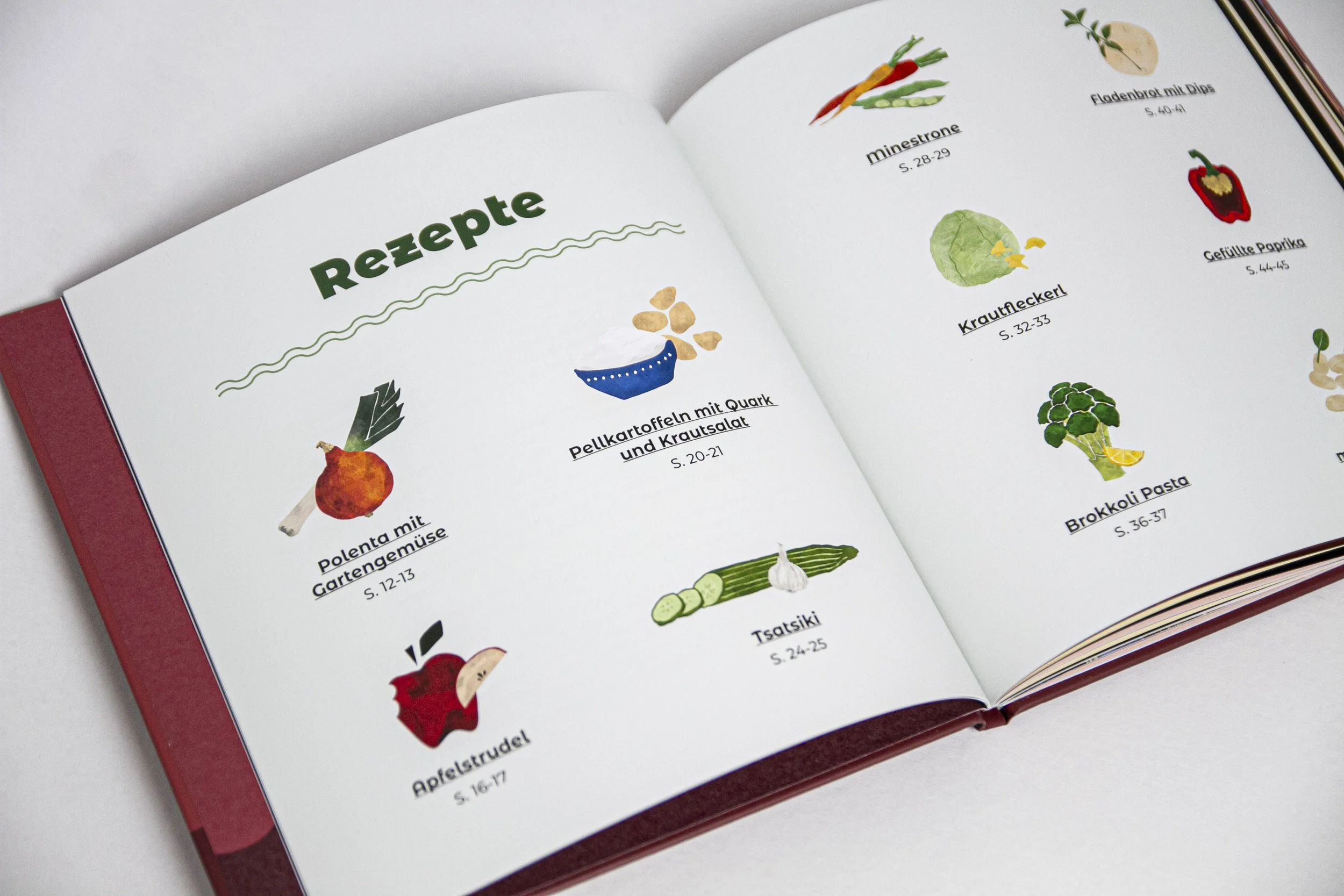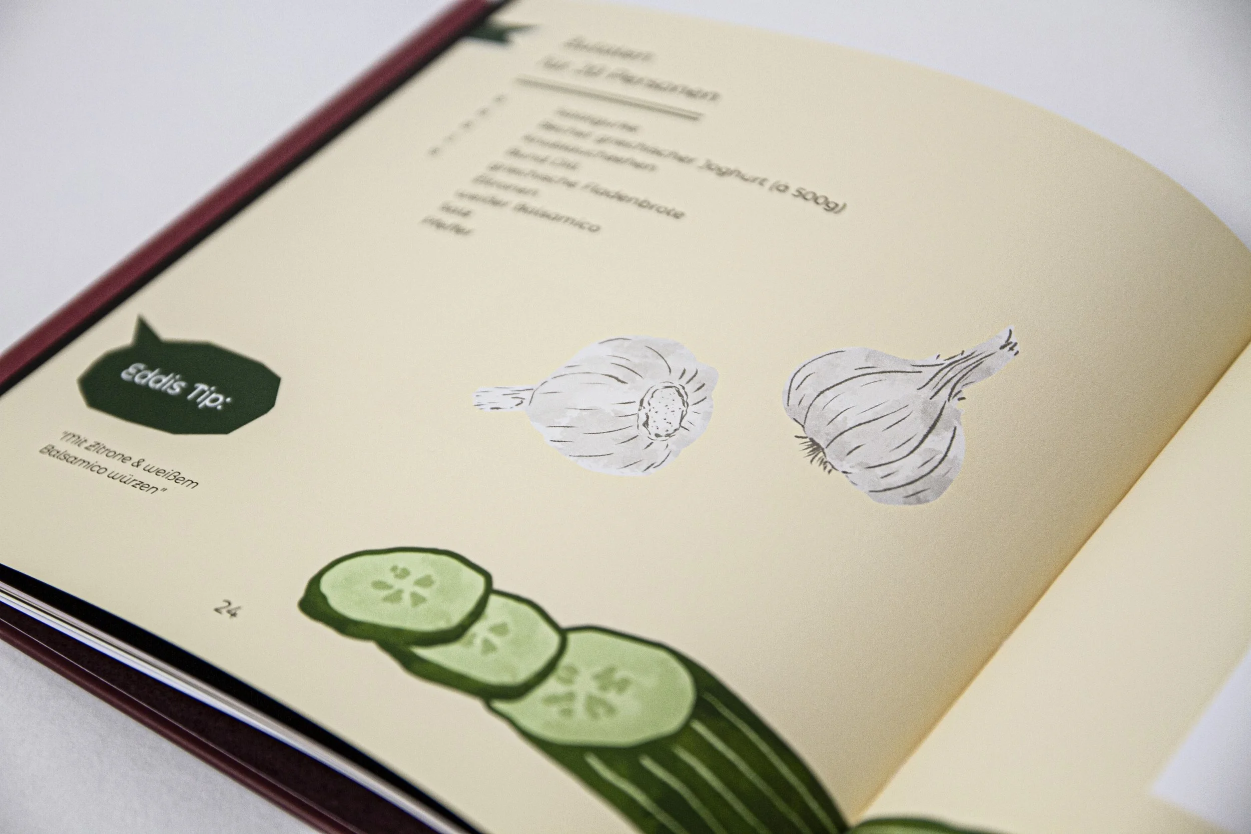 Illustrativ gestaltetes Buch mit Rezepten des Theaterkochs Edwin